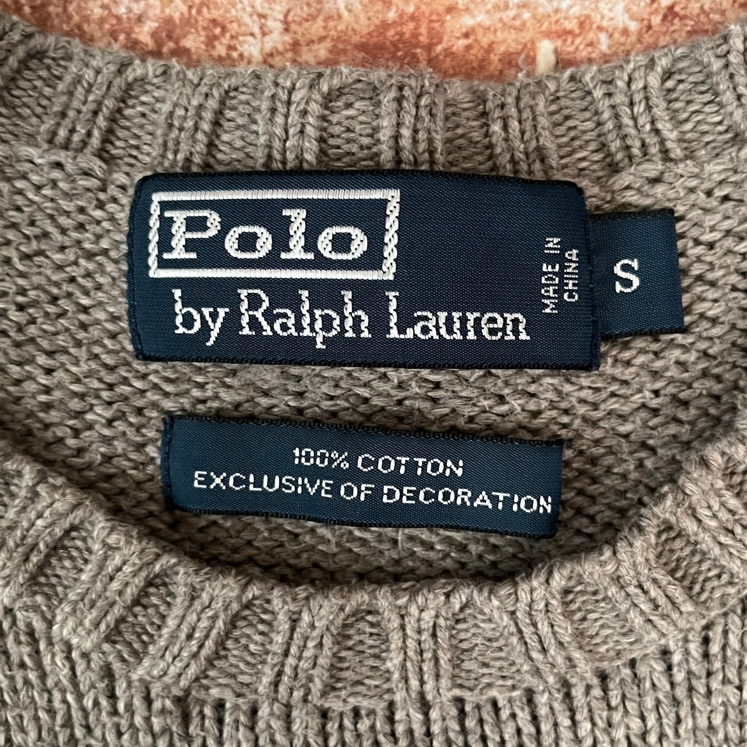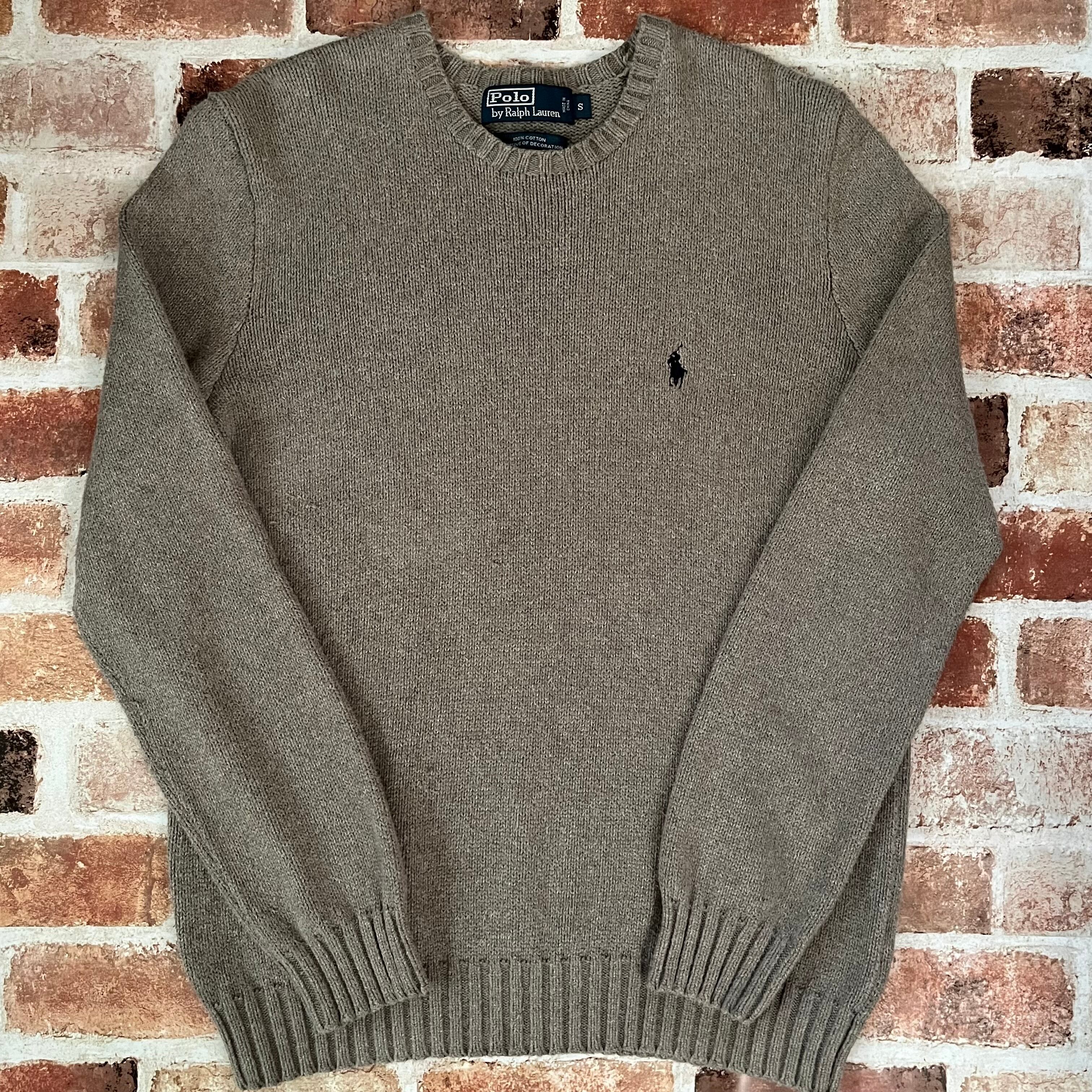希少色グレージュ★Polo by Ralph Lauren ポロ バイ ラルフローレン コットンニット セーター 刺繍ロゴ アメカジ ストリート 古着 Sサイズ